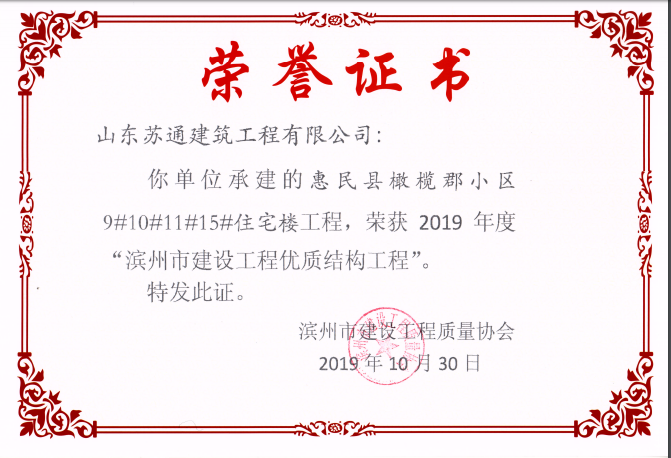 山東蘇通建筑工程有限公司,創(chuàng)建于2009年8月。目前擁有房屋建筑工程施工總承包壹級、市政公用工程施工總承包叁級、水利水電工程施工總承包叁級資質,同時還具有建筑裝修裝飾工程專業(yè)承包貳級、消防設施工程專業(yè)承包貳級、鋼結構工程專業(yè)承包叁級、建筑機電安裝工程專業(yè)承包叁級等專業(yè)承包資質。 公司總部坐落于山東省濱州市濱城區(qū)黃河十二路877號,現(xiàn)有辦公面積約2000平方米,機構設黨支部工會辦公室、總經(jīng)理辦公室、綜合辦公室、工程管理部、經(jīng)營預算部、資產(chǎn)財務部、材料設備部、運行管理部、法律事務部等多個職能部門。公司管理體系已經(jīng)通過了GB/T 19001及GB/T 50430質量管理體系、GB/T 24001環(huán)境管理體系(EMS)、GB/T 28001職業(yè)健康安全管理體系(OHSMS)等體系的認證。 公司承建完工了濱州市建大教師之家、建大清怡苑、香格里拉水岸綠城住宅小區(qū)、雙泰建大城、曲阜崇德公館住宅小區(qū)、北海新區(qū)御景藍灣住宅小區(qū)、沾化德榮國際華城住宅小區(qū)、惠民橄欖郡住宅小區(qū)等工程項目,目前在建工程項目有:濱州市頤高國際電子商務產(chǎn)業(yè)園住宅小區(qū)項目、濱州市東盛國際項目、高新區(qū)建大中央華府住宅小區(qū)項目、濱州市融匯新里程住宅小區(qū)項目、濱州市建大秦皇壹號住宅小區(qū)項目、濱州市森林花...